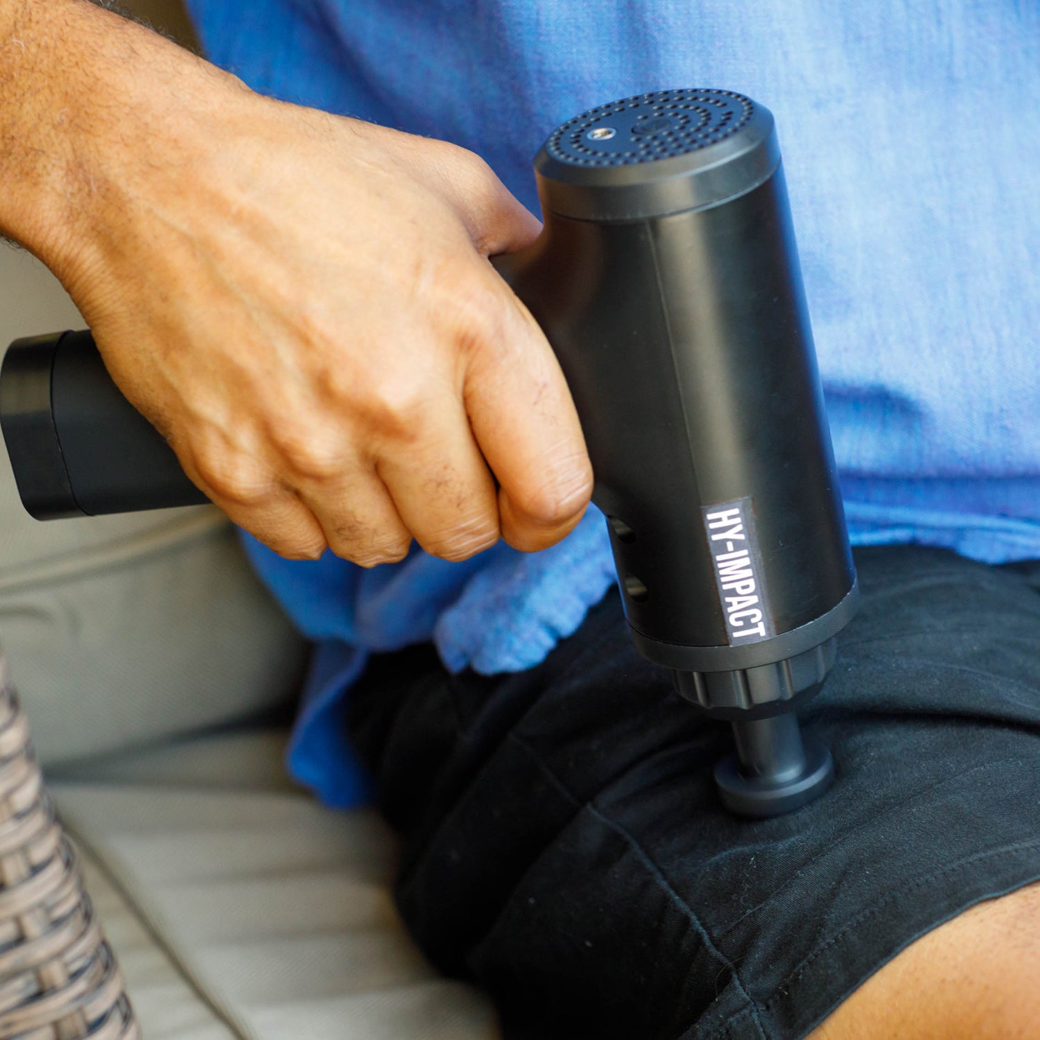 El Hy Impact Masajeador Inalámbrico con Terapia de Percusión te ofrece los beneficios de un masaje profesional de lujo desde la comodidad de tu casa, gimnasio u oficina.